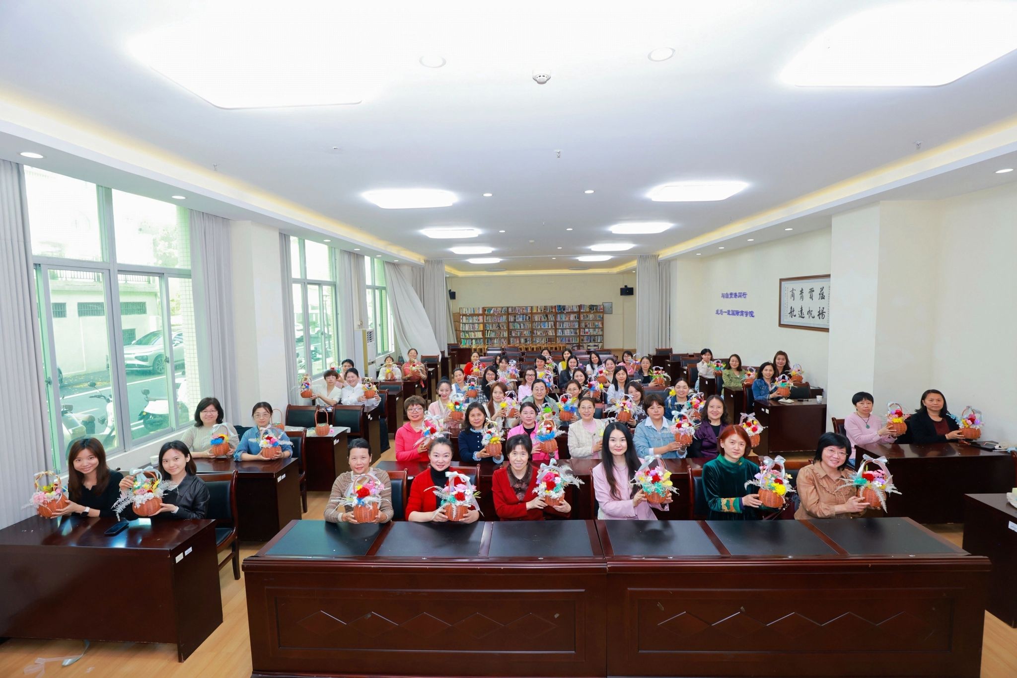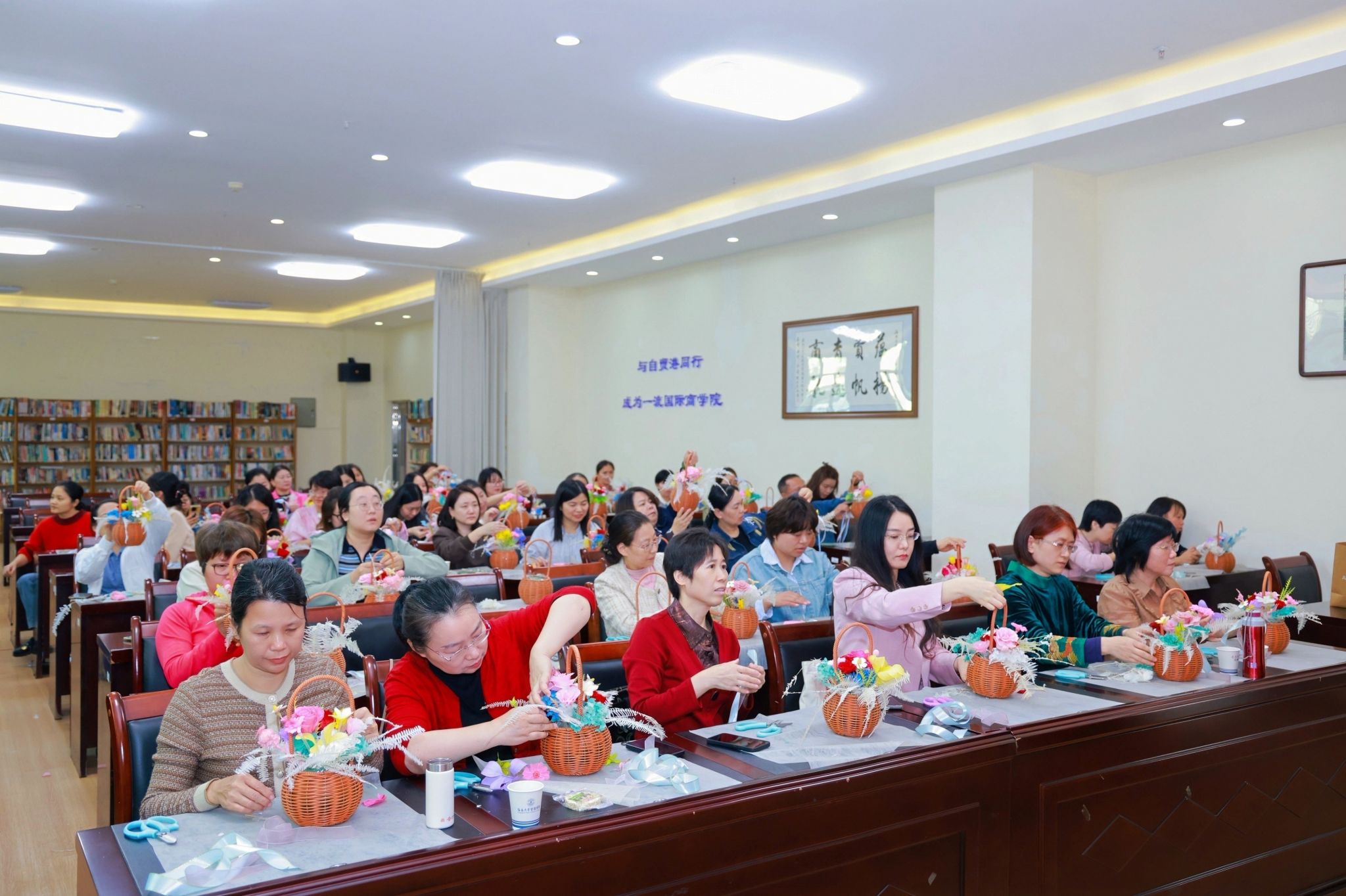 花香润心,雅致同行。此次插花活动让女教职工们在花香与笑语中舒缓了工作压力,感受了艺术之美,也在互动协作中增进了情谊、凝聚了力量。活动最后,大家手捧精心创作的永生花作品合影留念,将这份独特的节日记忆定格在春日午后。