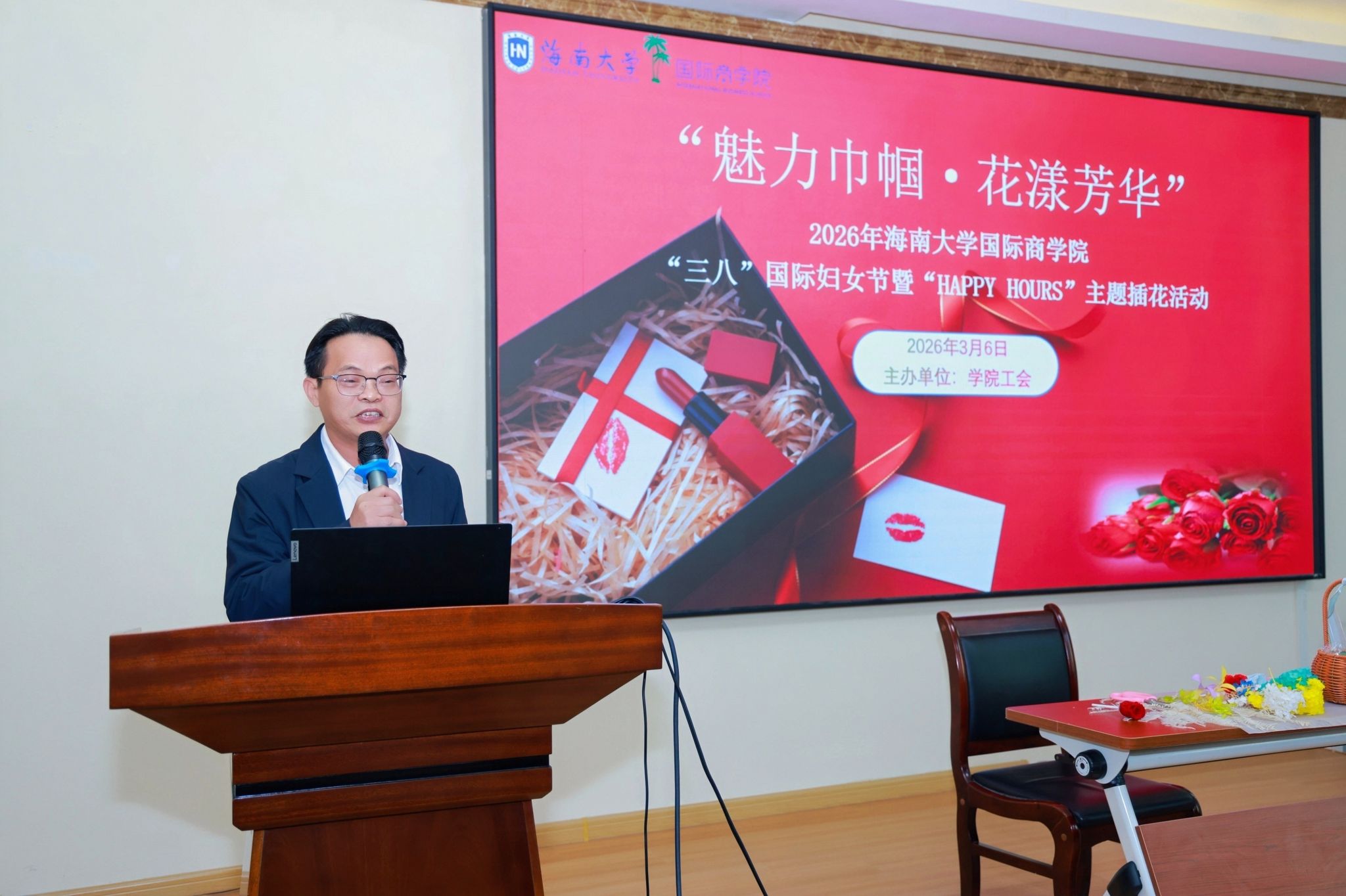 党委书记陈琛、副书记王静、工会副主席秦翰翔与女教职工代表共赴这场春日的芳香之约。活动由秦翰翔主持。