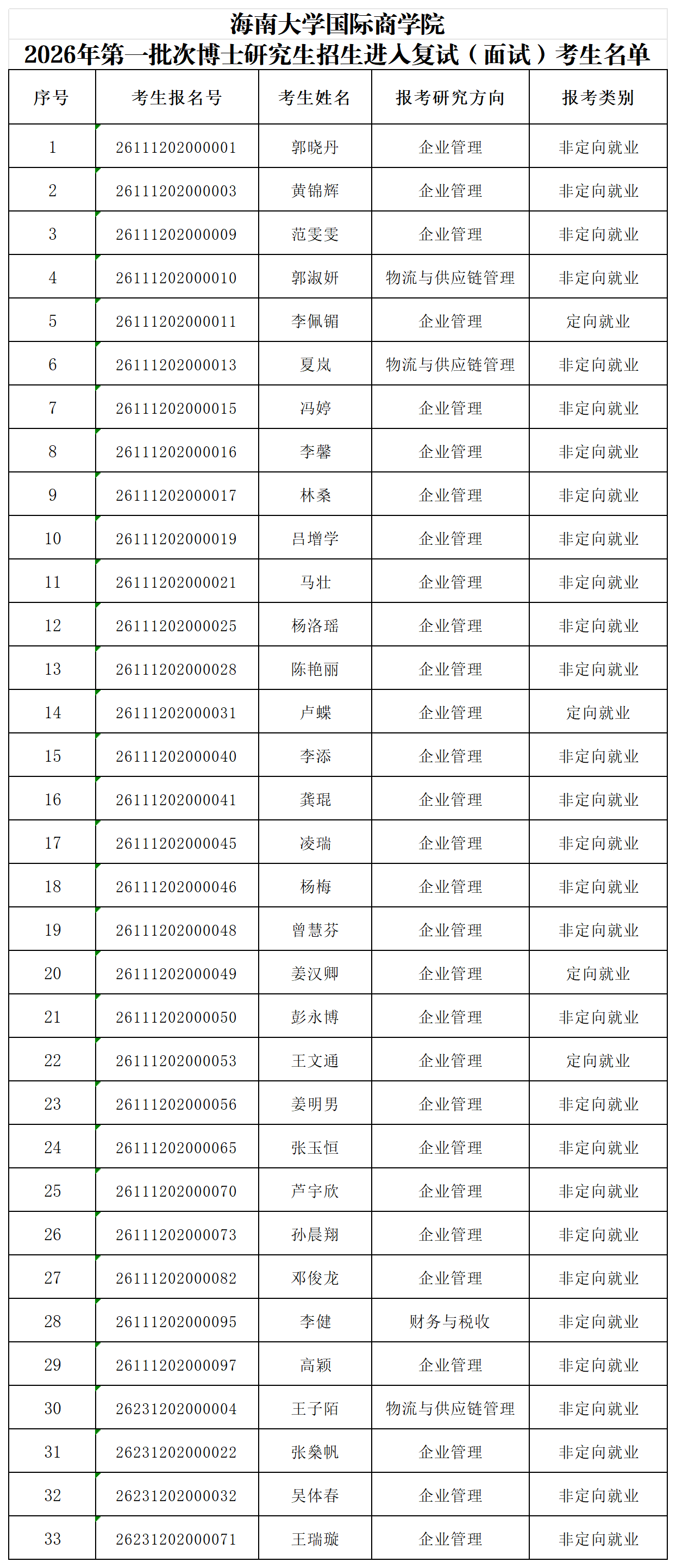 经av影片直播 组织资格审查和初试(笔试)考核,2026年第一批次博士研究生招生进入复试(面试)环节的考生名单如下。