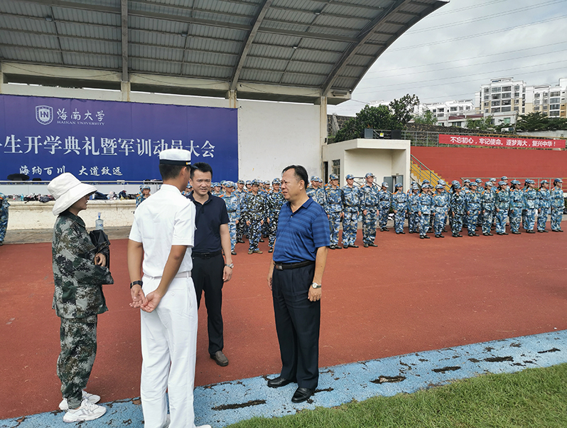 9月10日上午,管理av影片直播 党委邢谷川书记和负责学生工作的副处级辅导员符涛来到城西校区慰问军训学生和教官,参训辅导员肖亚奇老师和李春老师随行慰问。邢谷川书记仔细询问参训新生的军训情况和适应情况,叮嘱同学们注意安全,教导新生们通过军训树立爱国精神、集体意识和纪律意识。适逢教师节来临之际,邢谷川书记向军训教官、教师致以节日问候,要求教官和参训教师坚决完成学校军训任务,为大学生四年学习生活打下良好的基础。