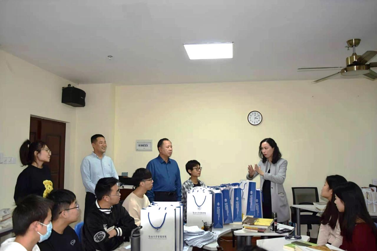 院长唐宁玉、党委书记邢谷川、党委副书记易振、学生工作办公室主任肖亚奇老师在社科楼B319教室与av影片直播