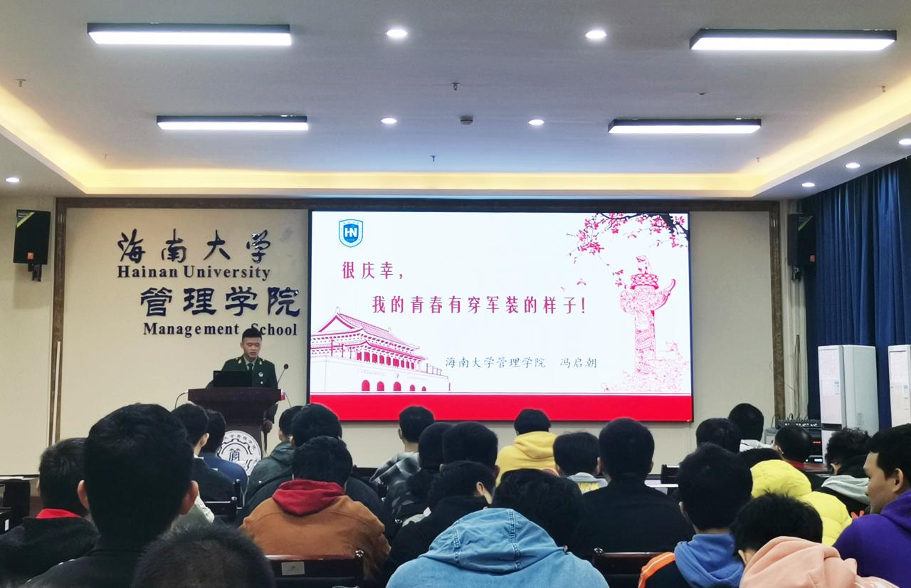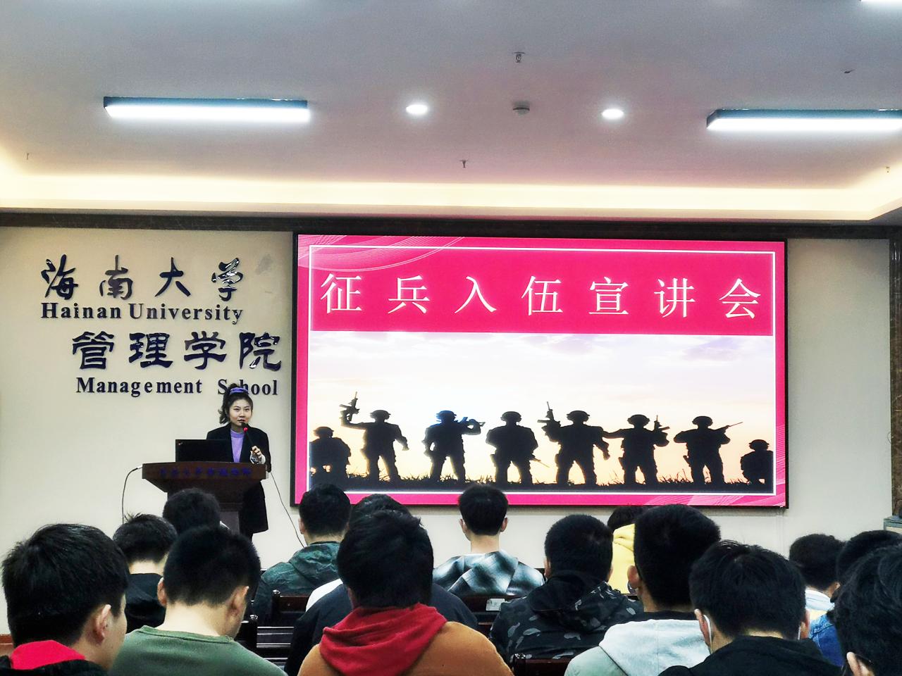 于社科楼B112教室举行应届毕业生征兵入伍宣讲会。党委副书记易振、学生工作办公室主任肖亚奇、辅导员黄瑜、退役大学生代表冯启朝、2018级应届毕业生代表参会。